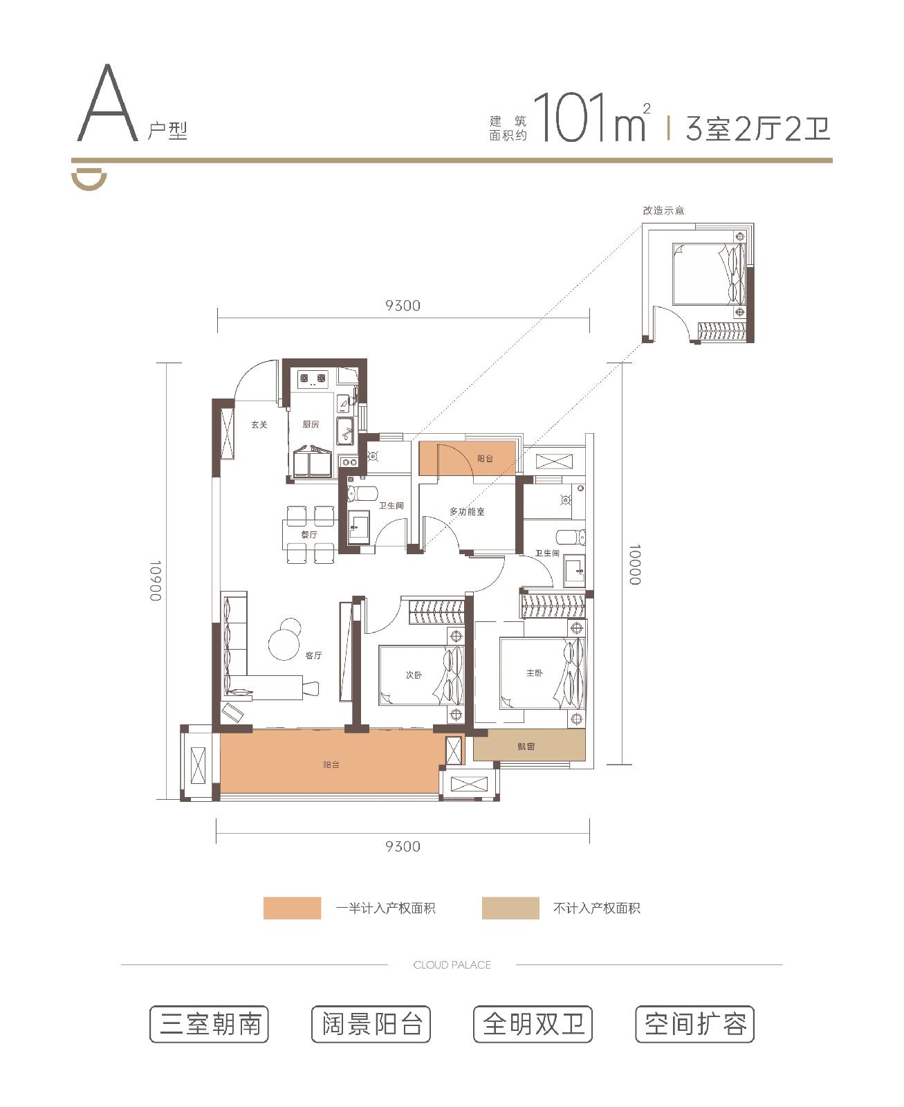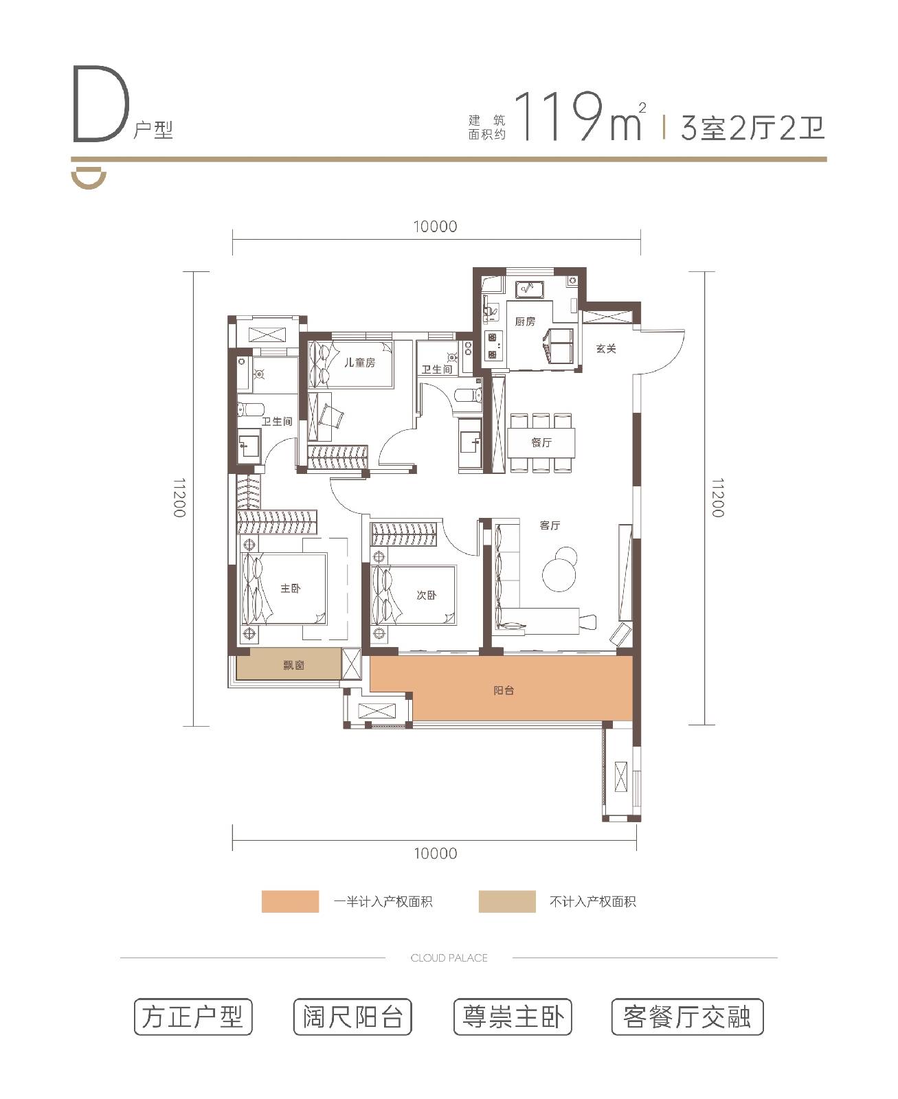 改善型三居室户型,聚焦品质生活需求,空间布局更加合理,居住舒适度更高。户型采用大面宽、短进深设计,最大化提升了采光面,让室内每个空间都能享受充足的阳光。客厅轩敞明亮,与南向阳台相连,阳台宽度充足,可打造为休闲区、健身区或观景区,满足业主多元生活需求。主卧套房设计,配备独立卫生间和衣帽间,私密性强,彰显品质;独立卫生间干湿分离,配备浴缸和智能马桶,提升使用舒适度;衣帽间收纳空间充足,轻松容纳全家衣物。两个次卧空间宽敞,采光通风良好,可作为儿童房或客房,也可根据需求改造为书房、茶室等,灵活性强。厨房采用开放式或半开放式设计,与餐厅相连,增强了空间的互动性,适合家庭聚会;厨房操作台面宽敞,动线合理,配备嵌入式家电,美观又实用。